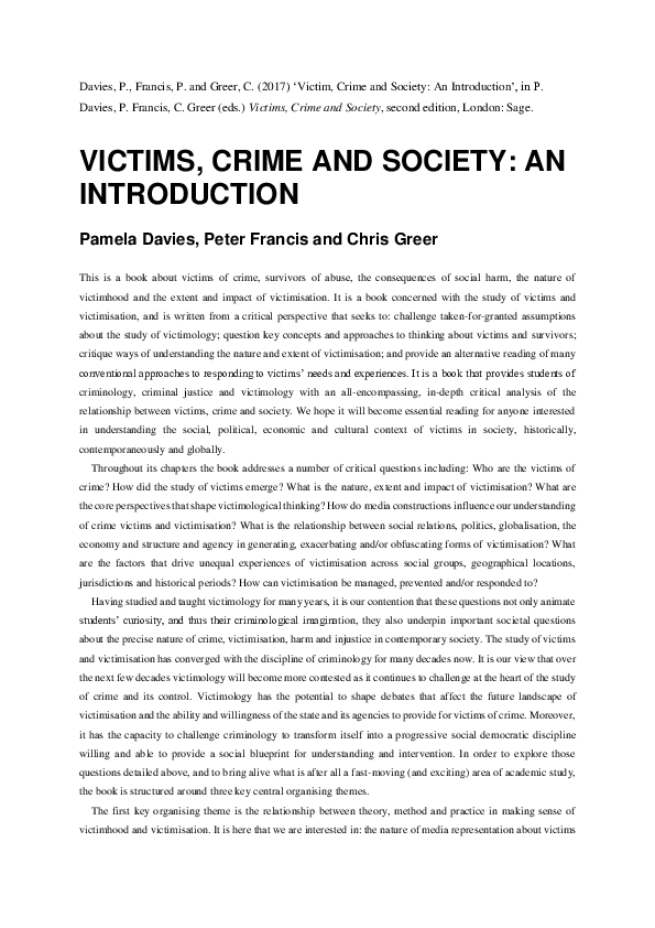 Pdf Victims Crime And Society An Introduction Second Edition Chris Greer Academia Edu