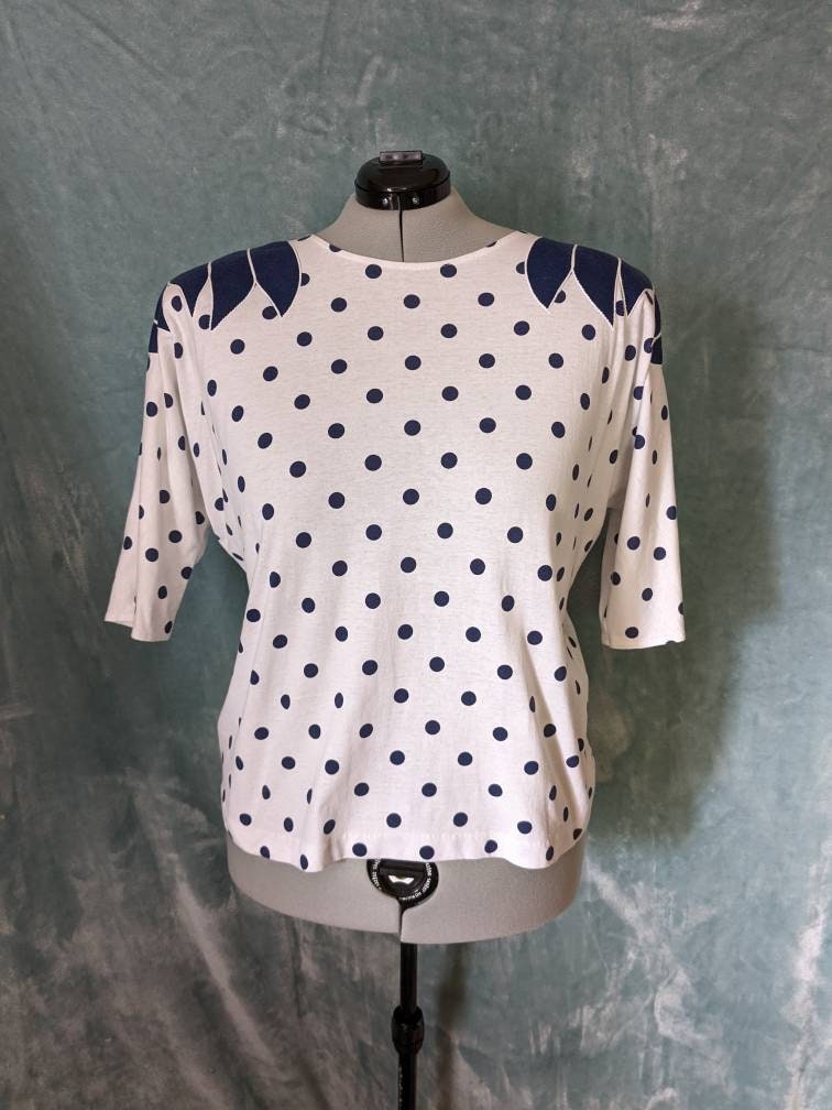 Plus Size Vintage 80s 90s Polka Dot Navy Blue Cotton Blend Etsy